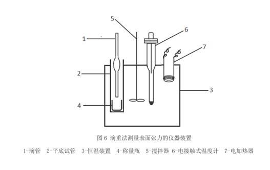 滴重法是利用液滴重量與支持它的表麵張力的力相平衡進行測定的試驗。主要也是因為表麵張力與液滴重量、滴管半徑、液體密度及重力加速度相關。滴重法要使用到的儀器主要玻璃滴管、恒溫裝置、平底試管、稱量瓶、攪拌器、電接觸式溫度計、電加熱器等。試驗步驟也是先配置測定溶液,清洗測量儀器,然後安裝好實驗裝置,啟動攪拌器,調節接觸溫度計,至所需溫度,使水恒溫半小時,要求普通溫度計的誤差不超過±0.5 ℃。恒溫足夠時間以消除平底試管內與水溫的差,一般溫差小於 1 ℃。用分析天平稱得潔淨幹燥的稱量瓶空瓶重。放入浸入恒溫裝置的平底試管內。將橡皮管套於移液管的未加工端,用吸球將待測液吸入移液管內,用夾子夾住橡皮管不使待測液滴下然後將移液管垂直懸掛入恒溫裝置內的試管中,但不可與稱量瓶接觸。恒溫半小時後,慢慢旋開夾子,讓液體自然滴下,調節水滴的下落速度至每滴 100-120 s。至20 滴時擰緊夾子,取出移液管。將稱量瓶稱重,減去空的稱量瓶重量,求得每液滴的重量。在同一溫度下重複兩次。對於表麵張力能隨時間迅速變化的或者界麵能夠迅速相互飽和的界麵,測定精度為±0.1%。
