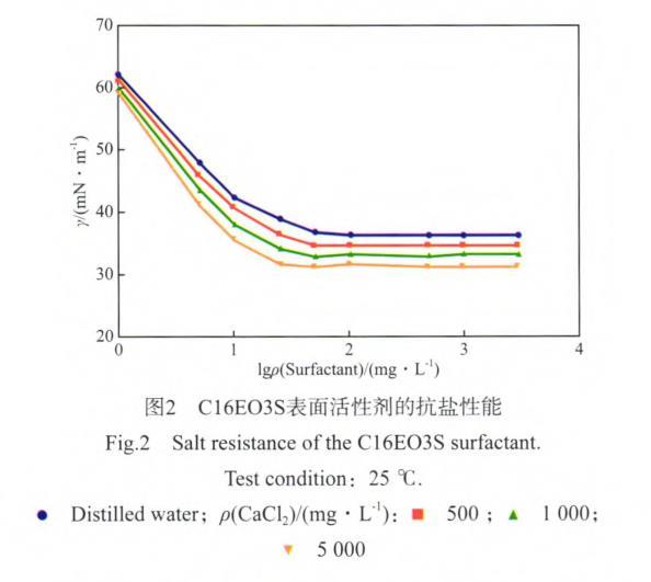 圖2 C16EO3S表麵活性劑的抗鹽性能