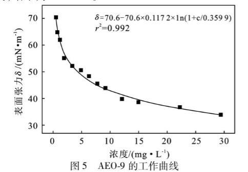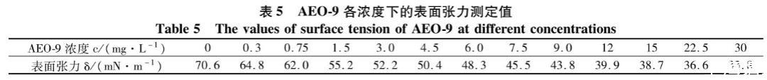 表5 AEO-9各濃度下的表麵張力測定值