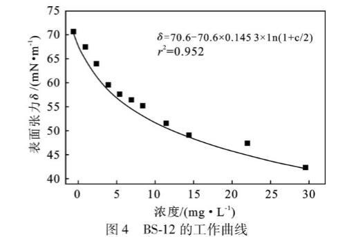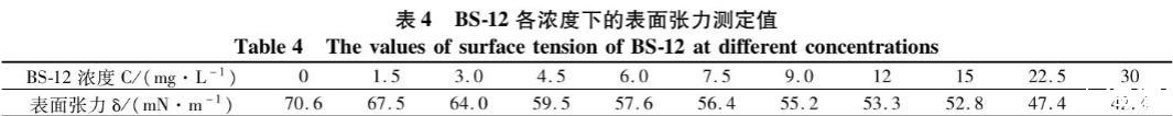 表4 BS-12各濃度下的表麵張力測定值