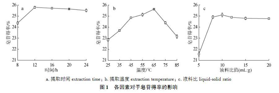 2.1水浸提肥皂莢皂苷的單因素試驗結果