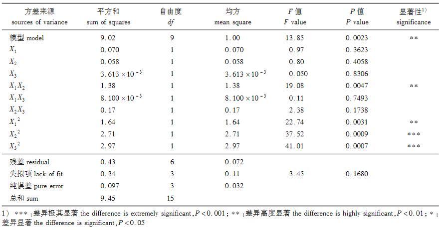 根據P值大小可分析各因素對肥皂莢皂苷得率的影響程度,因此由P值可知:PX3>PX2>PX1,可以得到各因素對皂苷得率的影響程度為X1(溫度)>X2(時間)>X3(液料比),即溫度對皂苷得率影響最大,時間次之,而液料比的影響最小。