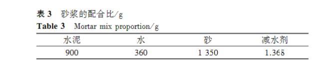 根據GB/T17671的相關規定拌合砂漿,砂漿水灰比為0.40,灰砂比為1∶1.5,減水劑用量為水泥質量的0.076%,每組砂漿攪拌時各原材料的用量如表3所示。增稠劑按照設計摻量提前溶解於拌合水中,然後直接以拌合水的形式加入。