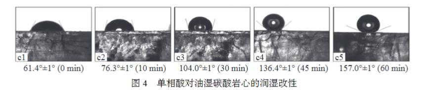 圖4單相酸對油濕碳酸岩心的潤濕改性