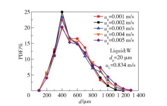 表麵張力變化不僅影響平均尺寸,還深刻改變了氣泡尺寸分布形態(圖2)。隨著σ降低: