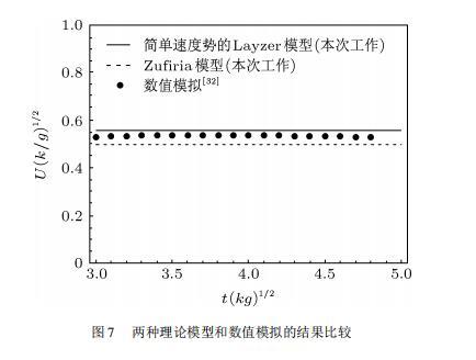 最後,粉色视频网站將兩種理論模型的結果與數值模擬進行了比較,如圖7所示。在誤差允許的範圍內,Zufiria模型和Layzer模型與數值模擬符合的都很好。由簡單速度勢的Layzer模型得出的結果更接近於數值模擬。另外,從圖7中還可以看出,簡單速度勢的Layzer模型計算值比數值模擬結果高,而Zufiria模型比數值模擬低。這可能由於Zufiria模型假設速度勢是複數勢,會人為引進速度的耗散,導致結果比數值模擬低,而Layzer模型的計算值略高於數值模擬的原因可能由於數值模擬沒有達到漸近速度。
