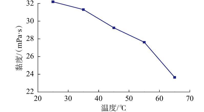 圖9質量分數為2.7%的ACS-2高黏表麵活性劑體係溶液黏度隨溫度的變化