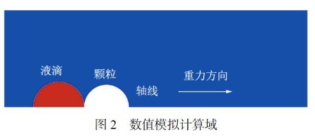 如圖2所示,液滴與顆粒對心碰撞時,流場在演變過程將始終保持軸對稱狀態,因此設置了二維軸對稱計算域。在相同的網格數量條件下,二維軸對稱計算域相較於三維計算域具有更好的網格質量和計算精度。在分析計算結果時,可以通過鏡像操作得到中軸線截麵上的整體流場圖像。由於實驗中最大雷諾數的數量級為104,因此,依據PASANDIDEH-FARD等的研究結果,可認為在塵−霧碰撞過程中流場處於層流狀態。