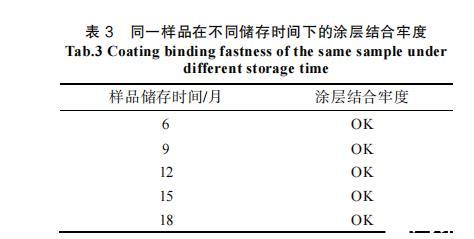 表3同一樣品在不同儲存時間下的塗層結合牢度