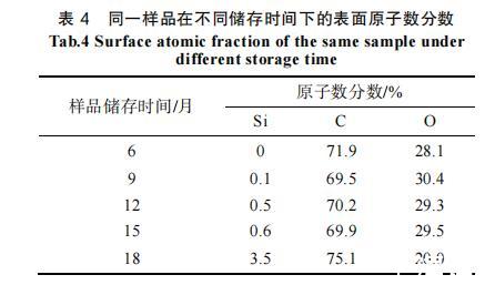 表4同一樣品在不同儲存時間下的表麵原子數分數