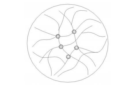 聚合物驅是油田開發穩產增產最重要的技術手段之一,在國內外油田得到了廣泛的應用。但聚驅後油藏儲層非均質性加劇,剩餘油分布更加分散,常規方法已經無法滿足生產實踐的需要。近年來,改性聚丙烯酰胺已成為研究熱點,其中黏彈性顆粒驅油劑(B-PPG)由於其獨特的性能更是得以快速發展。B-PPG是通過多官能團引發合成的高分子支化鏈與三維交聯網絡結構共存的聚丙烯酰胺,其分子結構示意圖如Fig.1所示。這種“軟固體”凝膠顆粒以固體顆粒的形式懸浮於溶液中,具有較好的變形能力,運移過程中時堵時驅,可以有效調節地層的非均質性。同時,其又具有較好的耐溫抗鹽、耐老化能力。目前,B-PPG驅油劑已經在勝利油田、河南油田推廣應用,增油降水效果明顯。