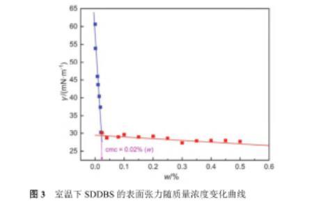 圖3室溫下SDDBS的表麵張力隨質量濃度變化曲線