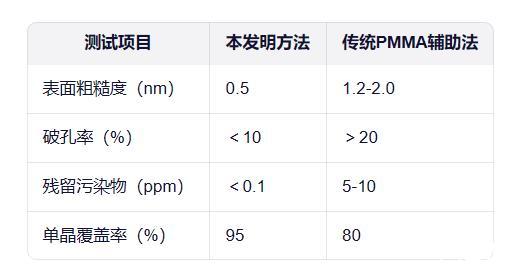 本方法不僅適用於單層石墨烯,還可擴展至雙層石墨烯及異質結構建。雙層石墨烯轉移後層間距穩定在0.34nm,無堆疊錯位。通過疊層轉移,成功實現氮化硼-石墨烯異質結,界麵無汙染,電導率提升2個數量級。工業化評估顯示,單次處理4英寸晶圓可完成千級載網轉移,良品率>90%。成本方麵,廿四烷酸成本較PMMA降低80%,清洗步驟減少30%溶劑消耗,具備顯著經濟優勢。