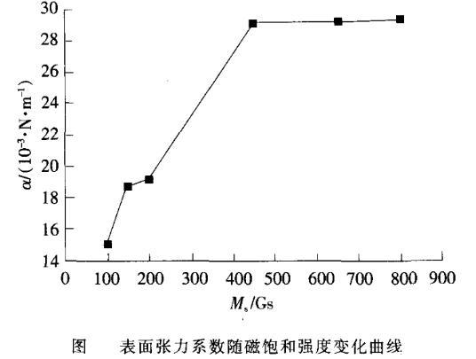 由圖7可知,α與Ms有關。Ms小於120Gs時,α與Ms成正比;大於120Gs小於200Gs時,α緩慢增加;大於200Gs小於440Gs時,成線性增加;大於440Gs時,基本恒定。這種變化規律主要是由於不同磁飽和強度的磁性液體所含磁性顆粒的數目不同所致。