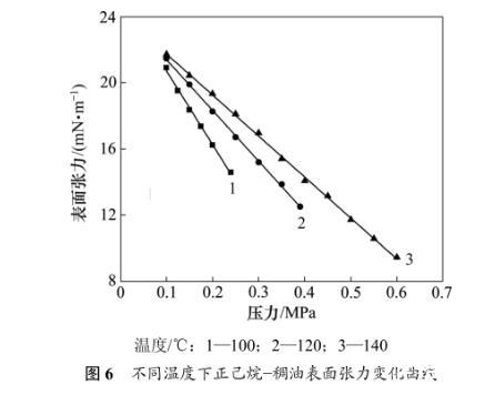 2.2.2溫度和壓力對正己烷-稠油表麵張力的影響