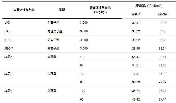 表2表麵活性劑複配溶液不同方法間靜態表麵張力測定結果對比(25℃)