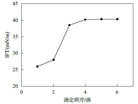 結果表明,液滴懸置5 min後,第一滴液滴表麵張力值最小,隨著連續滴定的進行,液滴表麵張力值逐漸增大,最終趨於平衡。究其原因,可能是由於懸置一段時間後,表麵活性劑分子在表麵充分吸附,所以第一滴液滴表麵張力最小,而隨著連續滴定進行,由於平衡時間較短,表麵活性劑分子在液滴的表麵吸附未達平衡,所以數值逐漸增大,然而滴加液滴的速度一定,表麵活性劑分子在表麵的遷移速率一定,降低表麵的能力與效率一定,最終會達到一個穩定值。而平衡時間的長短,與表麵活性劑分子的性質有關,遷移吸附速率快的表麵活性劑分子所需時間較短。由此可見,使用懸滴法測定表麵張力時,時間效應的影響不可忽略。