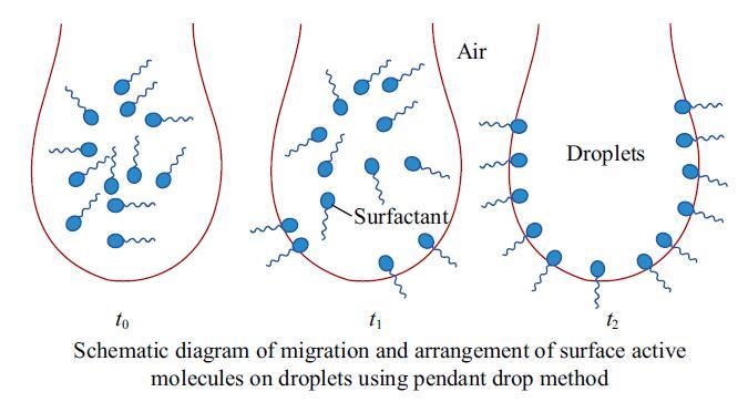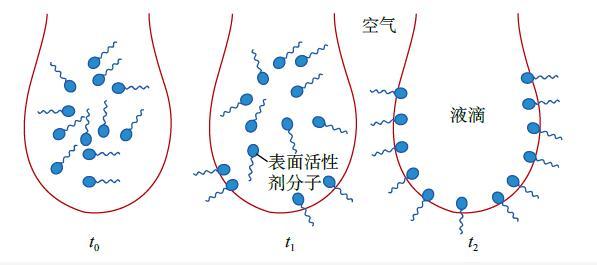 圖4表麵活性劑分子在液滴上的遷移排布示意圖