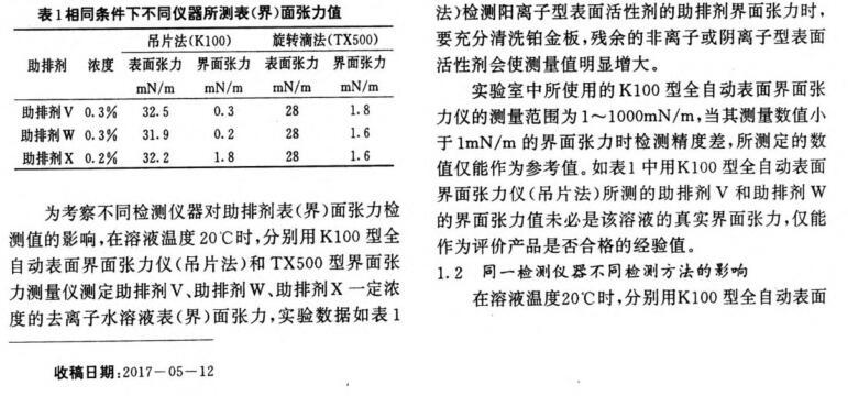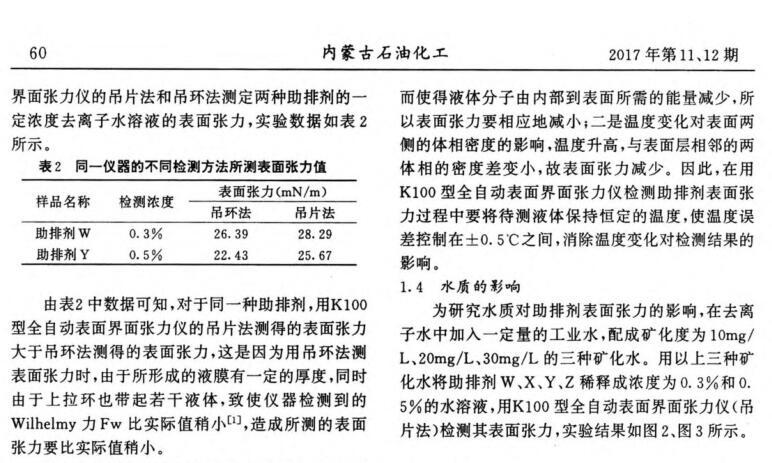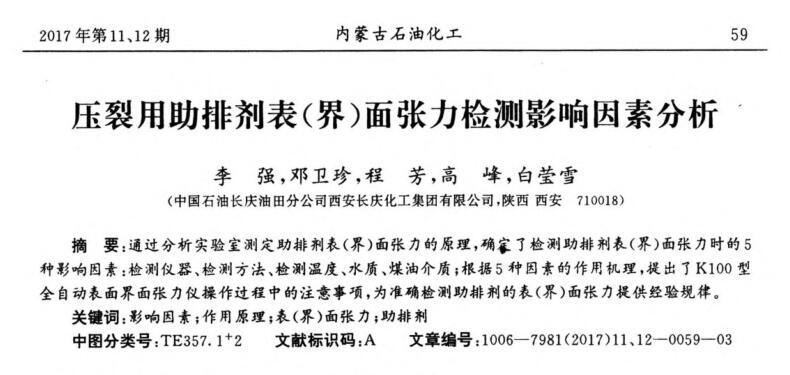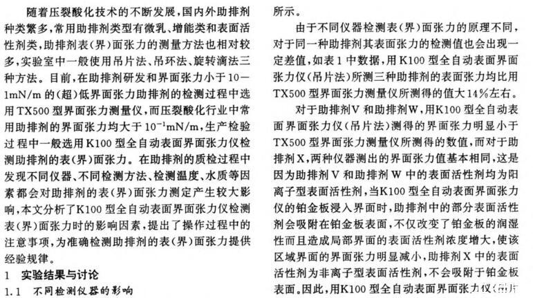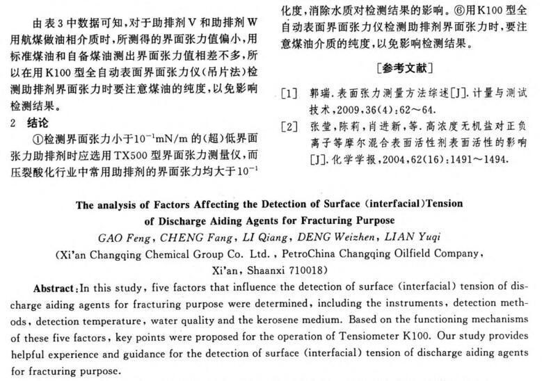 壓裂用助排劑表(界)麵張力檢測影響因素分析